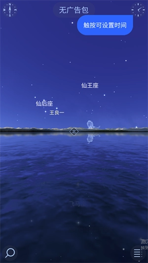 3、触按左上角可以实时观测上空的星星;