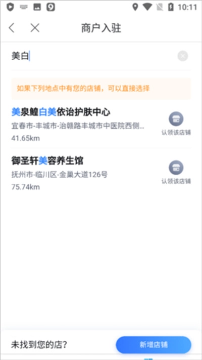 3、填写店铺名称时,请保证与实际招牌上的名称完全一致。要是系统里已经存在名称相同且地理位置也一致的店铺信息,您就可以直接进行认领操作。