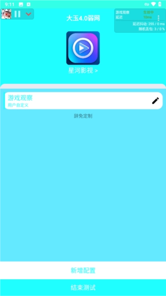 大玉4.0弱网是辞免开发的弱网测试工具,能够让用户随时随地搭建真实的弱网场景,支持自定义调整延迟、丢包率、带宽等网络参数,精准复现各类弱网环境。它可以帮助用户轻松优化网络环境,但需要注意的是,正式测试前需手动开启悬浮窗权限。该工具能协助用户在线完成网络环境模拟与弱网测试,为开发者提供更全面的网络测试服务,用户可便捷设置各项参数,享受更高效的弱网测试体验,进而查看应用在不同网络条件下的运行表现。