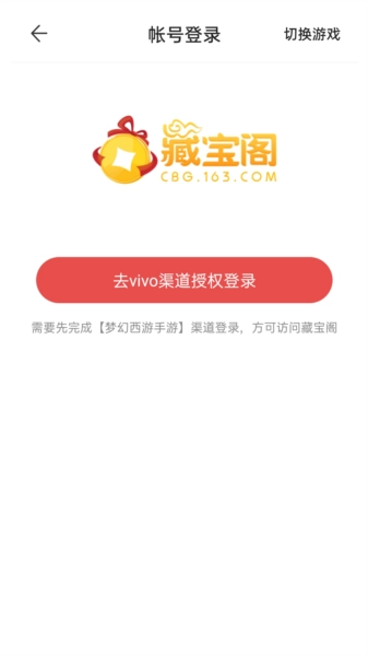 接下来玩家需完成vivo账号的授权步骤,接着登录该游戏对应的vivo账号,最后再进入藏宝阁平台。