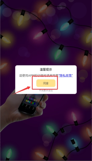 首次启动应用,请在温馨提示页面点击同意隐私政策。