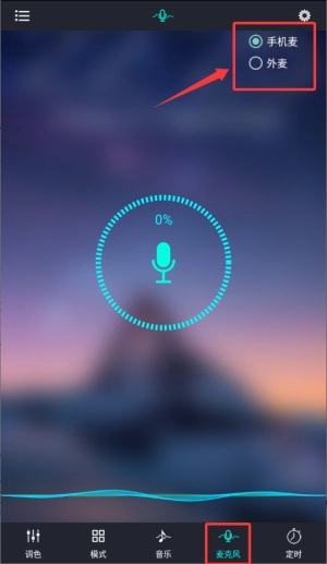 通过麦克风选项可选择手机或外接麦克风音频输入。