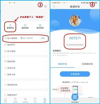 点击“邀请好友”按钮,即可查看专属邀请码,该邀请码可用于邀请其他用户。