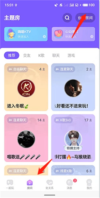 请点击页面底部的房间按钮,接着选择创建房间的功能选项。