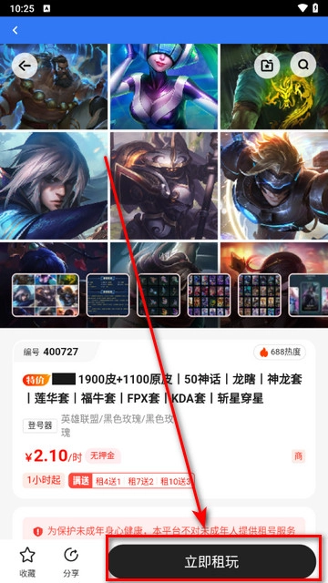 进入账号信息页面后,点击右下角的“立即租玩”按钮,就能完成租号操作。