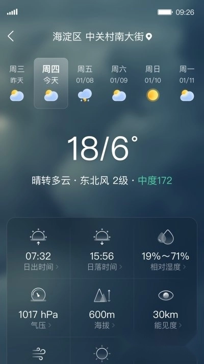 以精准的天气预测为依托,结合对各类天气情况的专业解读,为用户提供适配不同天气的生活指南,助力用户更顺畅地开展各项日常事务