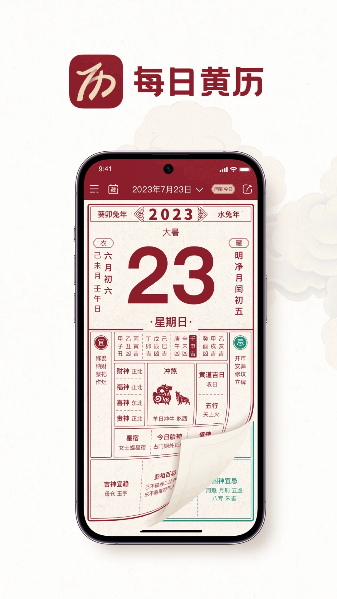 App界面设计十分简洁干净,黄历和万年历一键查询