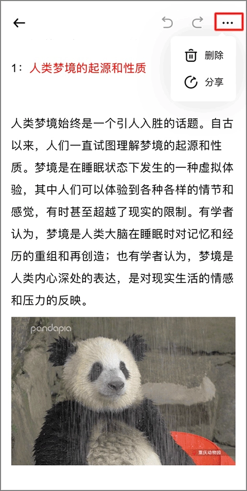 点击右上角图标,可以将文章删除或是分享给好友。