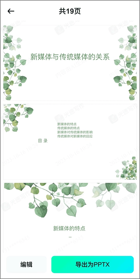 根据输入的标题会自动生成一个完整的PPT文档。