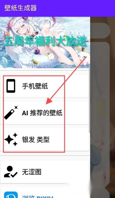 系统设置中提供了手机壁纸、AI智能推荐壁纸以及银发主题风格这三类选择,通过这些选项能够制作出高清晰度的壁纸与图片素材。