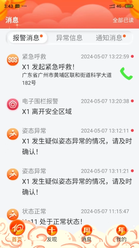 ③设置完成后,当家庭成员遇到紧急情况时,长按设备上的SOS按键,设备就会按照预先设定的顺序拨打求救电话。