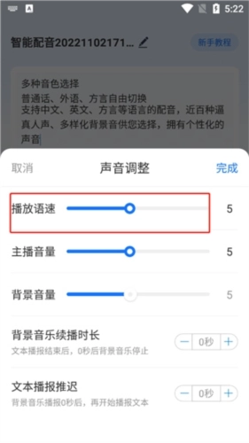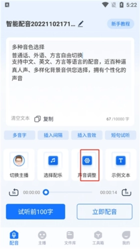 选择完成后,可对背景音乐和声音间距进行设置,随后点击“立即配音”按钮即可。