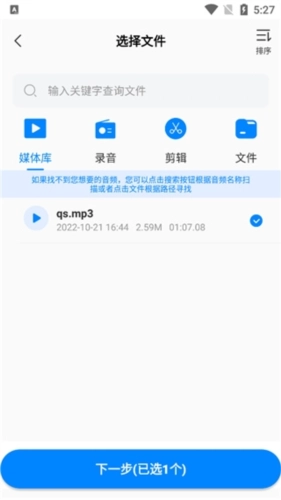 按关键字查询文件并选中,点击下一步