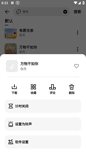 点击歌曲后面的三个点,可以选择歌曲或者收藏歌曲。