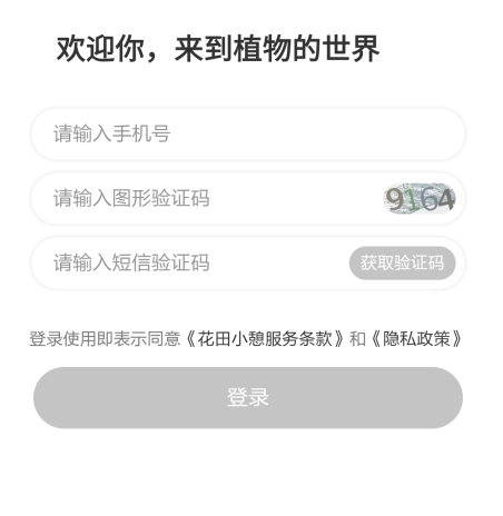 若想使用“花田小憩”这款软件的全部功能,需要先完成注册流程;如果已经拥有账号,则可以直接登录使用。