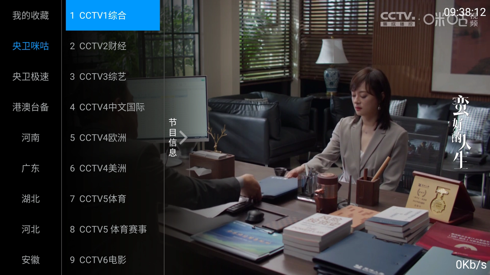 接下来能体验到直播源选择、超时自动跳转、实时网速展示等一系列实用功能。