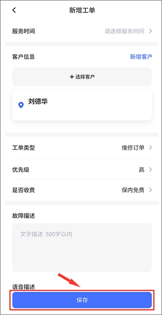 按照页面上的信息提示填写工单详情,所有内容都填好之后,点击页面底部的保存按钮,这样就能完成下单操作了。