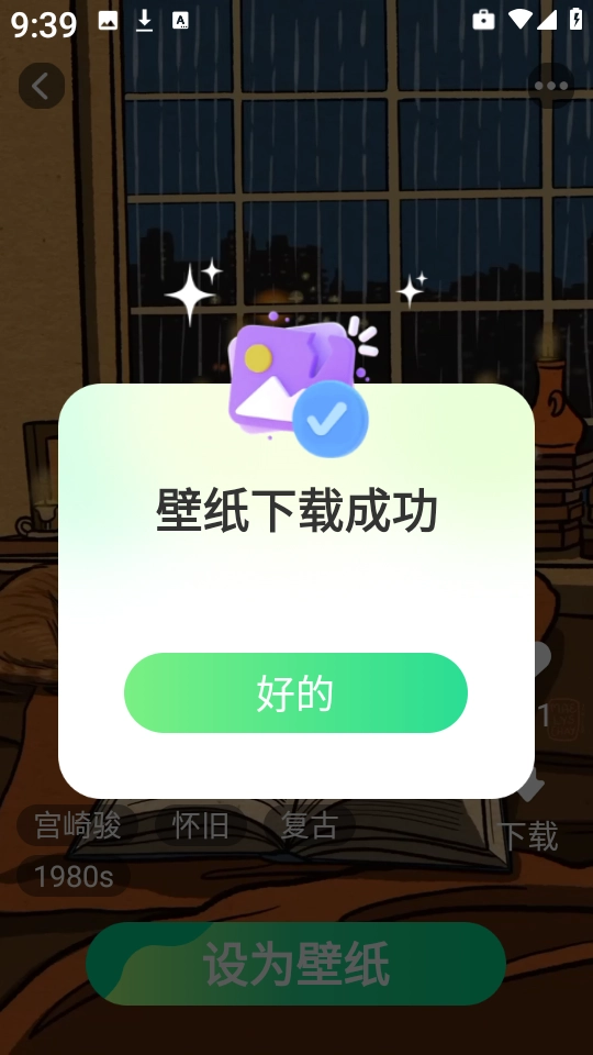 5、然后界面上就会出现“壁纸成功”的提示了。