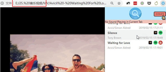 这款插件不仅能检测网页上的歌曲和视频,对于本地电脑里的mp3、mp4等文件也能进行检测——只需在浏览器中打开这些文件,再点击AHA Music插件图标就行。