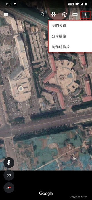 点击页面右上角那三个点的图标,就能完成查看自身实时位置、把位置分享出去以及制作明信片这些操作。