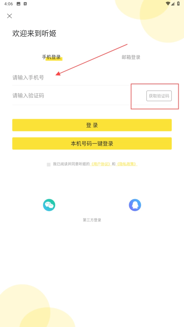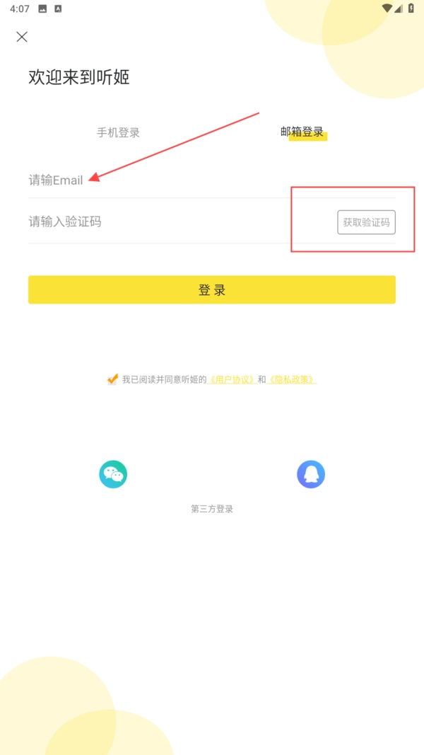 2、勾选协议后选择【第三方登录】图标用第三方账号登录。
