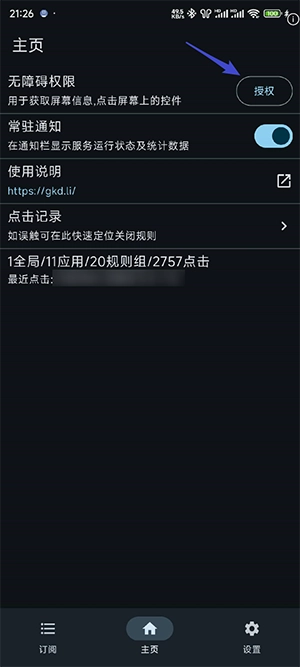 启动应用后会直接跳转到主界面,若要让应用功能完整运行,需要先授予其无障碍访问的相关权限。