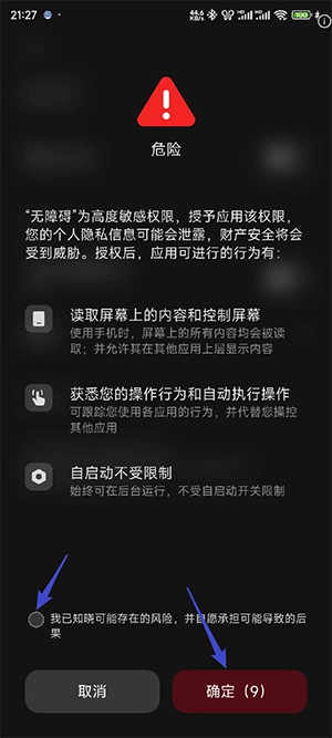 点击无障碍权限右侧的授权按钮,就能进入设置的无障碍界面完成授权操作。
