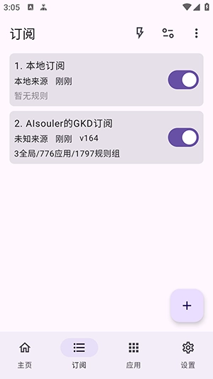 订阅一的链接为:https://raw.gitmirror.com/AIsouler/GKD_subscription/main/dist/AIsouler_gkd.json5