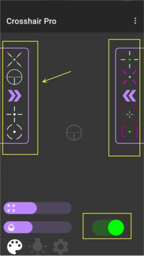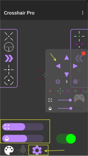 选好准星外观后,可拖动左下方的调节框来调整其尺寸与透明度。