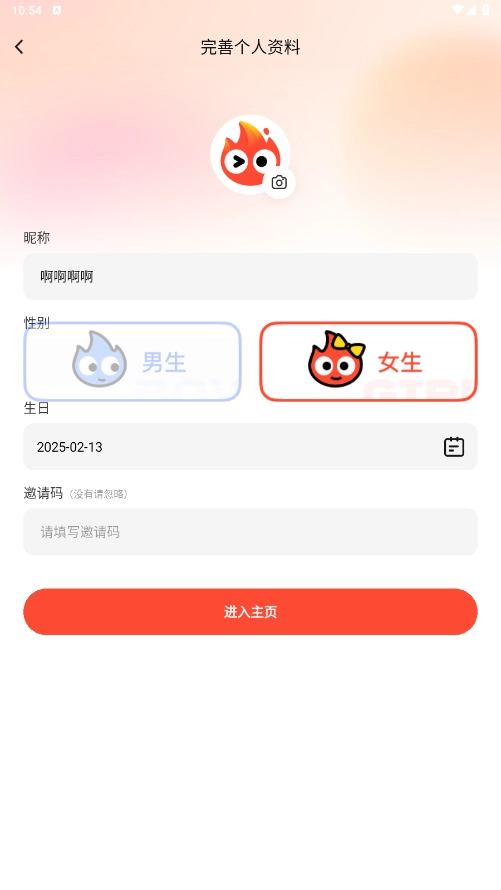 进入软件,首先进行个人资料的完善