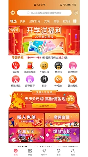 商品种类丰富多样,每日都有上万款新品上架。优惠券额度给力,下单就能享实惠