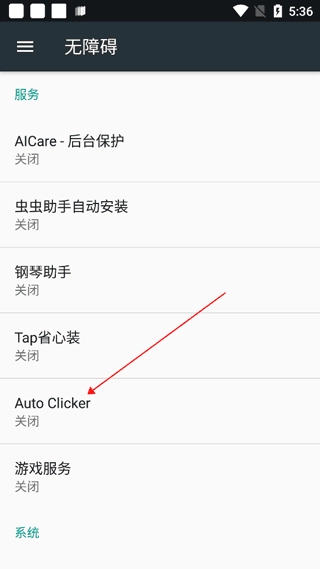 进入无障碍功能页面后,找到并启用【自动点击器】这个选项。