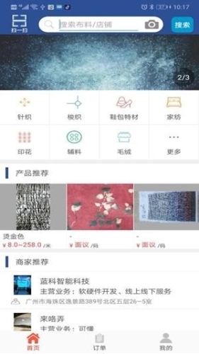 智能纺织城是一款由蓝科智能科技有限公司研发的纺织从业者的手机管理应用。智能纺织城提供以图搜布、搜辅料等纺织产品,给商家用户提供功能齐全、操作简便的仓储管理系统!搭配蓝科公司推出的小妹机、小弟机,可通过图片搜索及关键词搜索查找产品和商家,并可查询相关商品信息及下单,还能远程管理档口,实时监控店铺动态。需要的小伙伴欢迎使用!