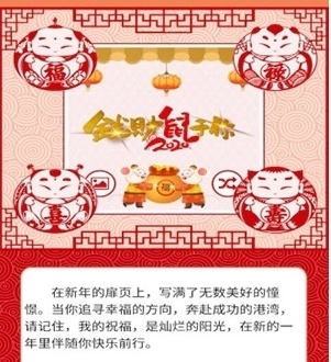 3、适用自定祝愿照片头像,内嵌大量拜早年素材图片,主题模板按时升级。