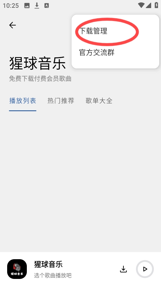 请安装最新版本的猩球音乐,安装完成后启动该应用程序。