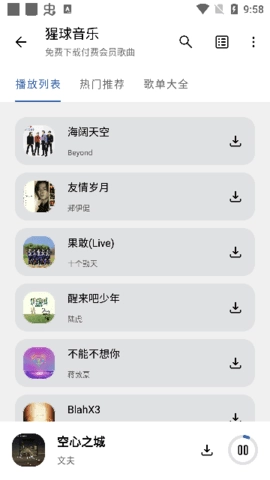 界面设计简洁直观,所有音乐均支持免费试听与播放。