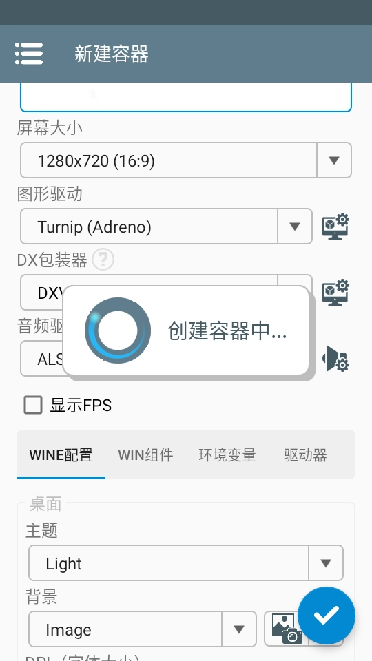 5、然后自定义新建容器,自定义名称,屏幕大小,图形驱动,音频驱动等参数。
