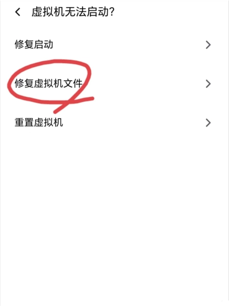 3、点中间那个【修复虚拟机文件】,修复启动没有用,就是个摆设。