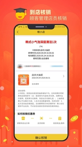 【到店核销】:顾客管理店员核销