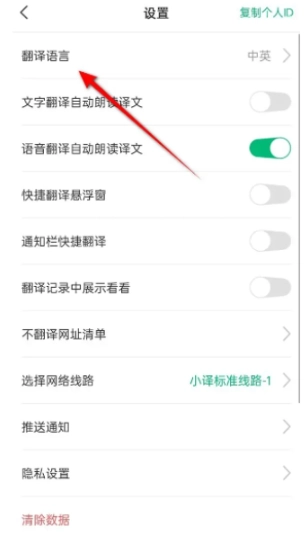 2、点击“翻译语言”