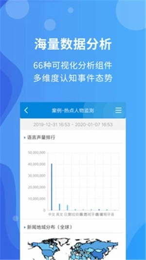 提供66种可视化分析组件,助力从多维度认知事件态势与主题热点。