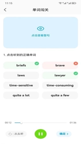 采用全球领先语音识别技术,独创三种口语训练模式:入门级全句跟读、进阶级关键词跟读、挑战级盲听跟读,帮你打造完美发音!