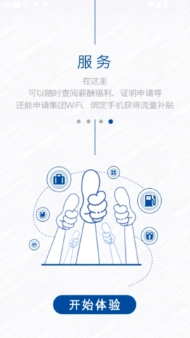 2、服务功能:在此可查询薪资福利、提交证明申请等;还能随时申请团体WiFi,绑定手机后即可获得流量补贴。