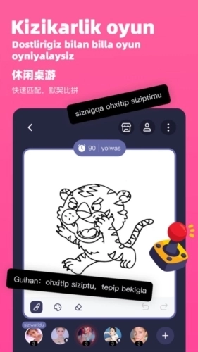 KIGO手机版是四川格曼科技有限公司专为广大新疆维吾尔族用户开发的一款线上语音社交平台,这里你可以找到自己附近的小伙伴,快乐聊天,一起享受趣味的语音交流!在软件中还有着许多的小游戏可供你来体验,狼人杀、你画我猜、五子棋等游戏全都有!你可以通过匹配功能去快速的与其他用户进行游戏,如果你也想尝试这款软件的话,那就赶快试试吧!