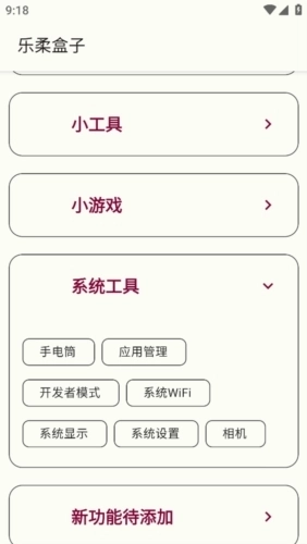 乐柔盒子nf工具箱是一款功能齐全的手机多功能工具箱,软件界面极简风格,各种不同功能齐汇聚,用户可以根据自己的需求进行挑选。在乐柔盒子nf中有着社工、小工具、小游戏以及各种系统工具等等,例如相机、手电筒、短视频等等都能够在这里找到。同时软件内还会不断的增加新功能,帮助用户解决很多日常生活中以及工作中会遇到的问题,感兴趣的用户欢迎体验!