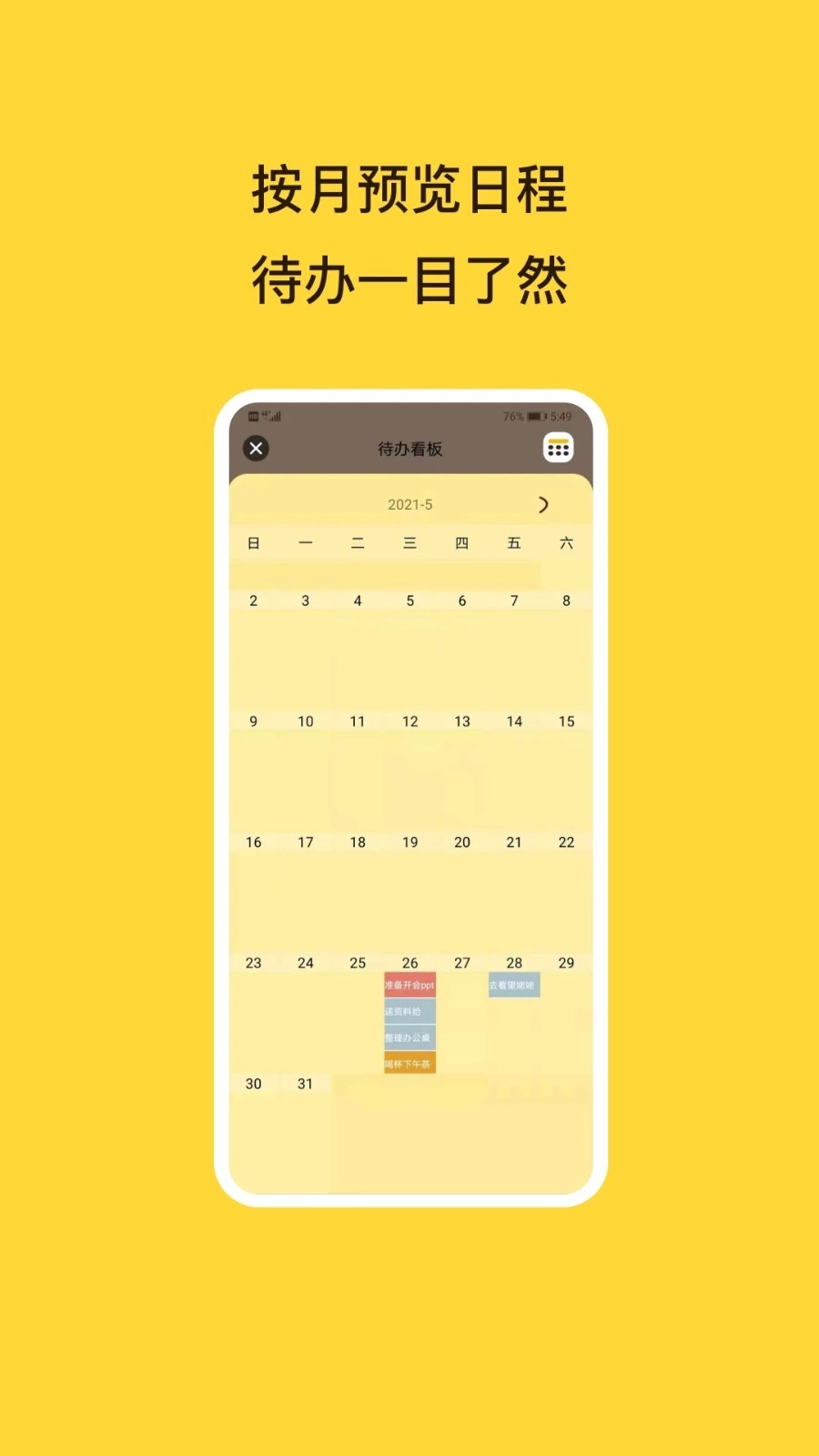 6、待办看板,可以按月预览未来每天待办的事。
