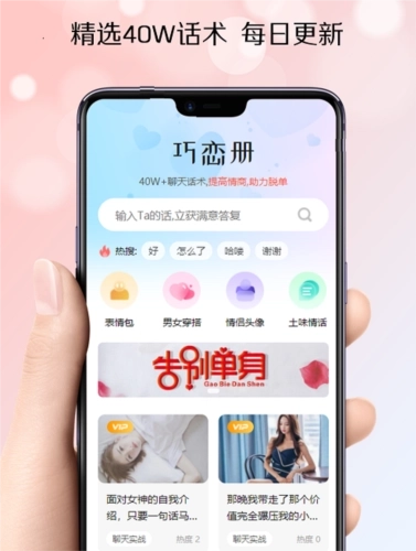 巧恋册拥有海量的恋爱话术能够帮助用户解决在聊天中所出现的各种问题,学习更多的实用话术。