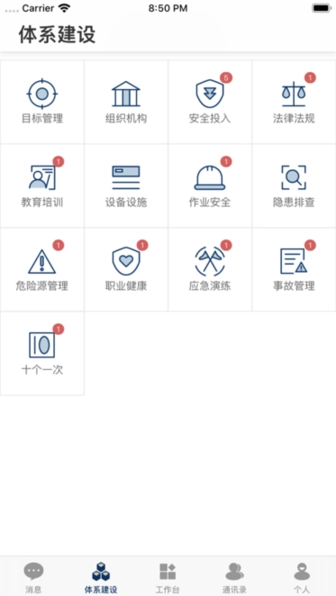 4、通知消息:整合企业通知、隐患公告及各类应用提醒等多种通知消息;