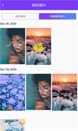 2、自动保存编辑的图片,按时间排序和显示,方便用户搜索;