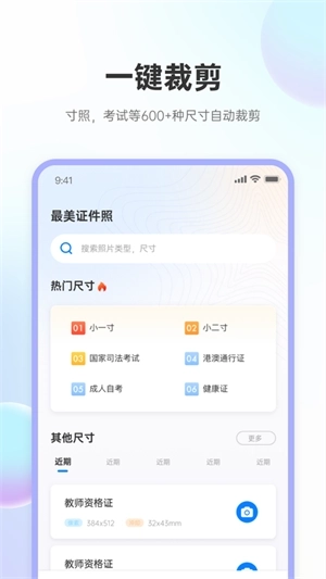 兆云证件照是一款主打证件照拍摄的美颜相机应用,不仅提供多种规格的证件照尺寸选择,能充分满足用户对证件照的个性化设计需求,还具备实用的美颜功能,可让拍摄出的证件照人物形象更加美观自然。